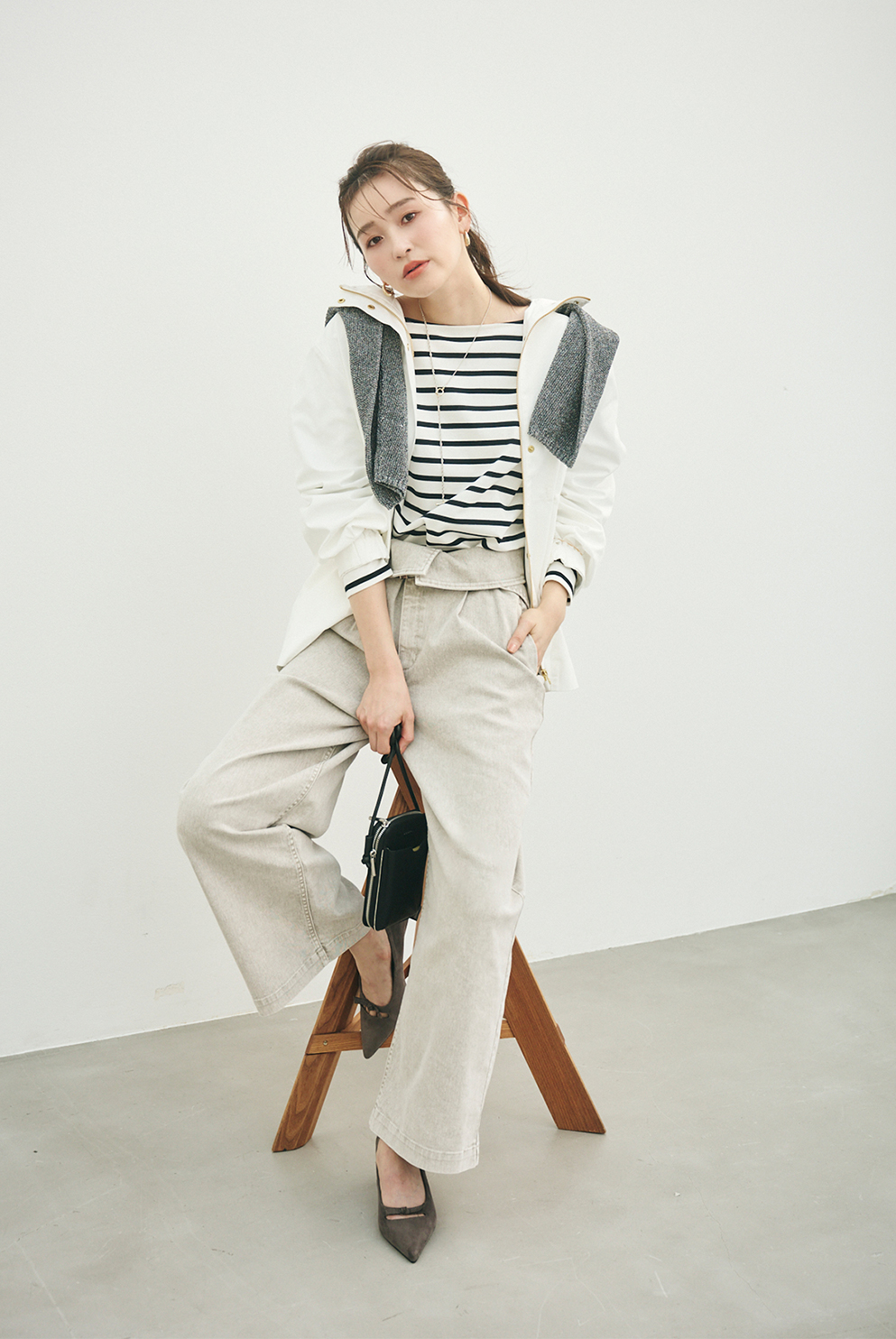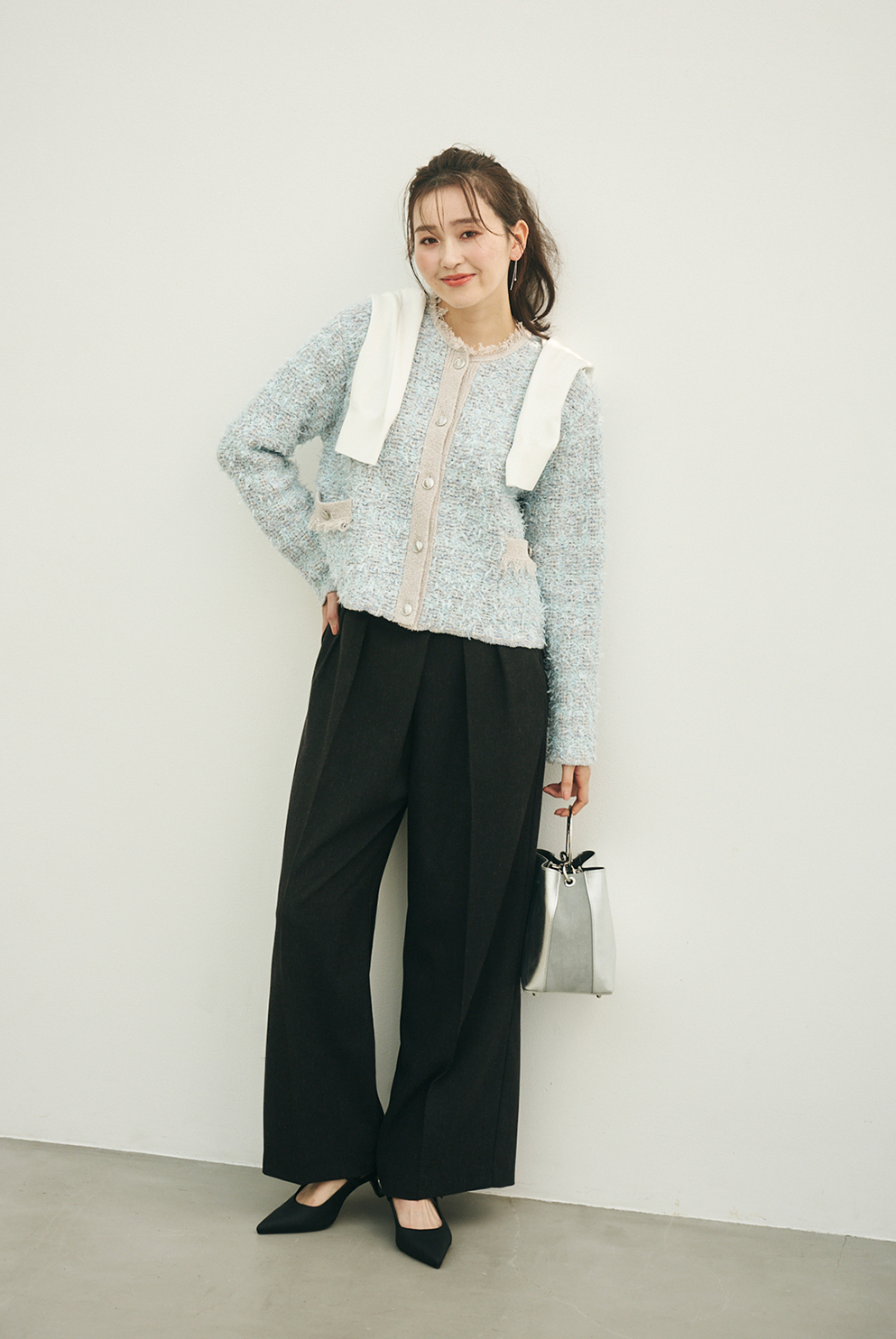パンツで引き締めれば甘さと凛とさの好バランスに。
