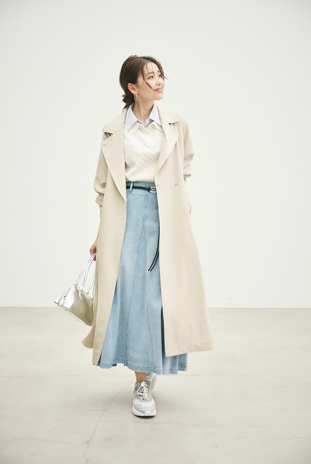 トレンチ×デニムを合わせれば、頑張りすぎない